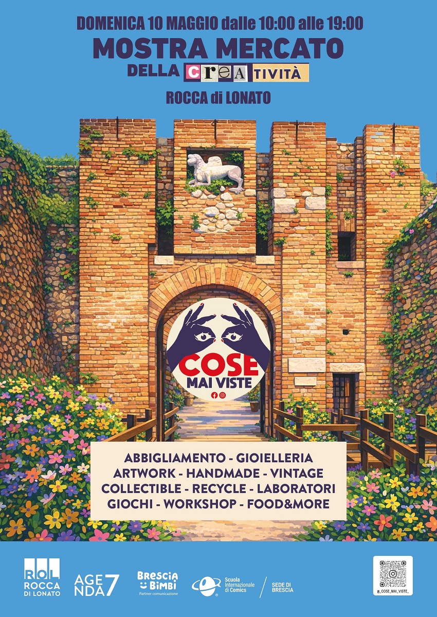 Domenica 10 maggio la Rocca di Lonato del Garda accoglierà Cose Mai Viste, il market della creatività sostenibile che valorizza l’artigianato hand made e le buone pratiche dell’economia circolare, che annovera oramai decine di edizioni sul territorio bresciano, dal Borgo di Padernello al cuore del capoluogo, con il Museo Diocesano di Brescia, Tenuta Urbana e Carme. Con la partecipazione di 60 espositori da tutta Italia, il mondo di Cose Mai Viste proporrà al pubblico le tante attività che hanno reso del “fatto a mano” una scelta professionale e creativa, sempre alla ricerca del nuovo, bello e sostenibile all’interno della Rocca di Lonato del Garda, la quattrocentesca Rocca visconteo veneta, che si staglia sul colle che domina il bacino meridionale del Benaco, offrendo una delle vedute più suggestive del Lago di Garda. Fortezza imponente e insieme sorprendentemente accogliente, la Rocca di Lonato è un luogo dove il tempo sembra rallentare, lasciando spazio all’ascolto, alla contemplazione, allo sguardo.
