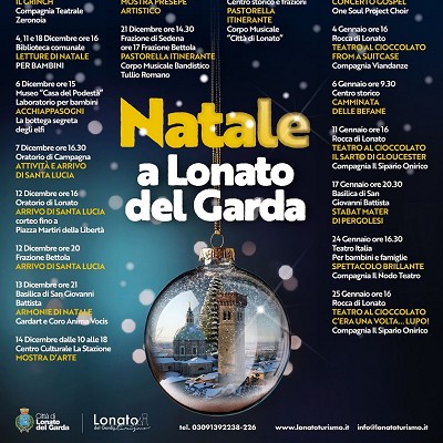 Iniziative per tutti, grandi e piccoli, tra musica, arte, teatro e iniziative legate alle tradizioni locali: il Natale a Lonato del Garda offre un ampio cartellone culturale che spazia dalla musica sacra e sinfonica agli spettacoli teatrali per famiglie, dalle mostre artistiche ai presepi tradizionali e meccanici.